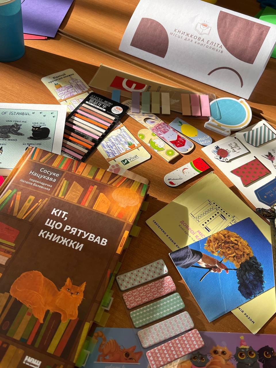 «Книжкова еліта» сьогодні мала атмосферну зустріч для обговорення книги «Кіт, що рятував книжки». Поділилися враженнями та думками, похизувалися колекціями закладинок і зробили їх власноруч із паперу. Тішимося, що наша команда росте та розвивається! Ми вже маємо логотип нашого книжкового клубу та чималу компанію однодумців-книголюбів! Приєднуйтесь до нас! Це дуже легко зробити - на канікулах читайте книги на свій смак і приходьте на наступне засідання читацького клубу! До зустрічі!