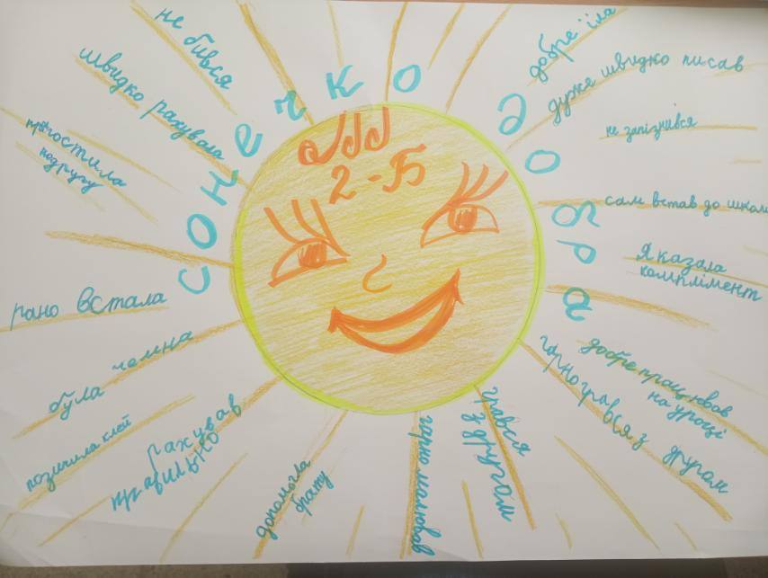 Сьогодні, 13 листопада, Всесвітній день доброти. У 2-Б класі відбулася тематична година спілкування. Малюки плели павутину добрих слів один для одного. Виготовили Сонечко добра, на промінцях якого писали про те, що доброго сьогодні зробили. Маленькими кроками йдемо до великих справ. Класний керівник Ілюк Н.П.